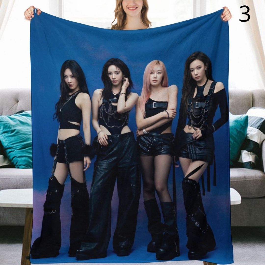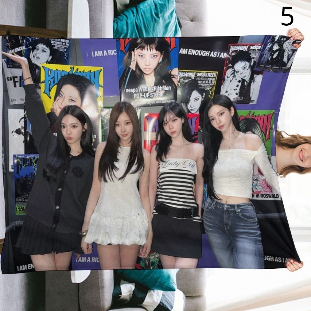 Featuring a high-definition, full-color print of all four members — Karina, Winter, Giselle, and NingNing — this blanket captures their stunning visuals, chic style, and powerful aura. 💜💎 Every detail shines in vivid clarity — from their confident poses to their iconic stage looks. The fade-resistant print ensures that your blanket stays as bold and beautiful as your favorite idols, even after many washes.