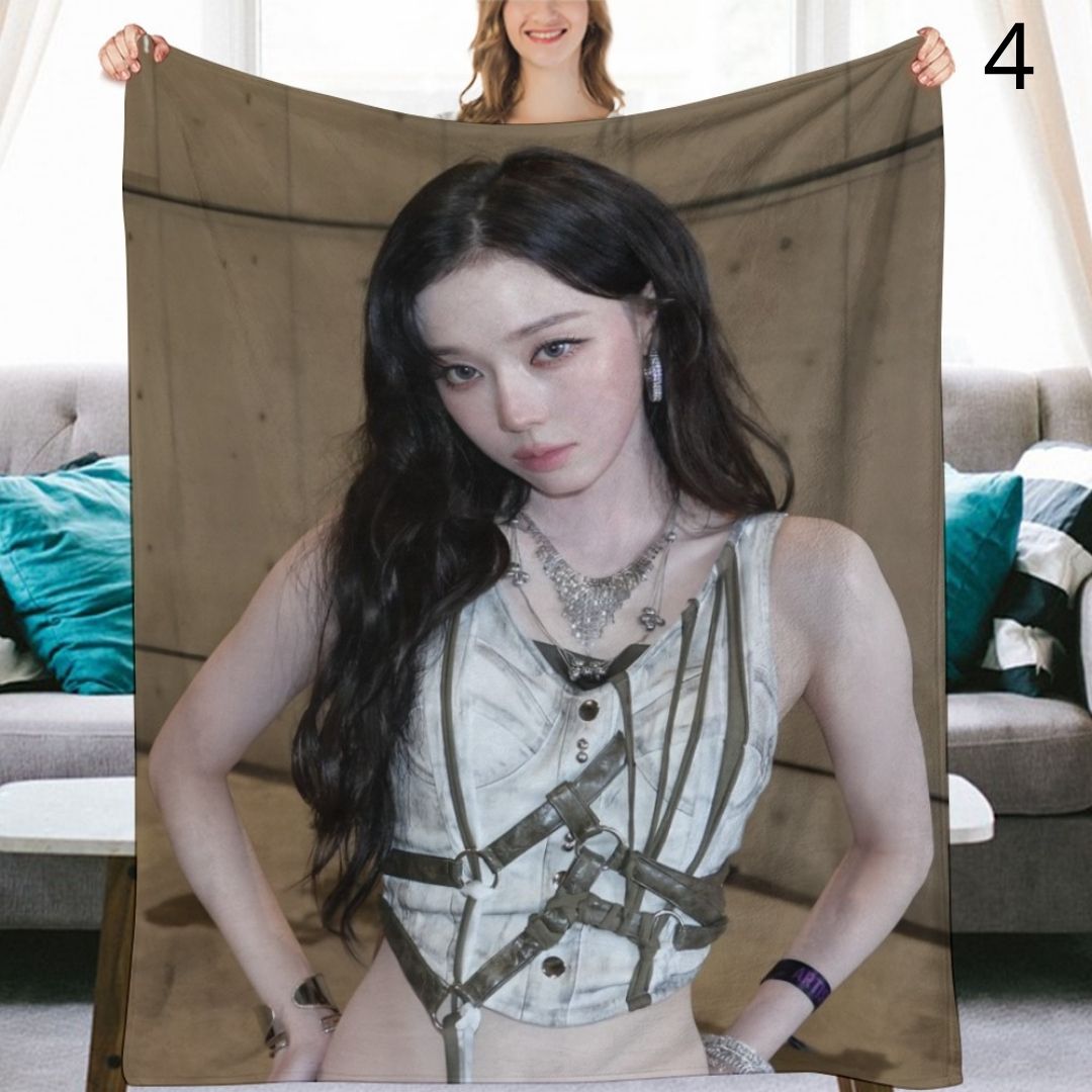 The highlight of this blanket is its high-definition, vibrant print of Winter, capturing her stunning visuals, confident stage energy, and graceful elegance. 🌸💎 Every detail — from her expressive eyes to her radiant smile — is printed with crisp clarity and rich color that stays beautiful wash after wash. Whether draped over your bed, chair, or sofa, this blanket adds a splash of K-pop glamour and personality to any space. 🛋️🌈